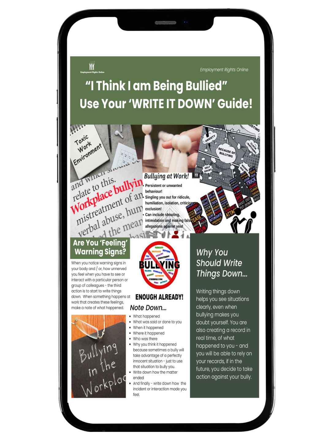 "Having a simple system to write down the bullying I face at work, gives me confidence, that when I need to remember the key points - I already have them written down and don't have to remember them from memory!"